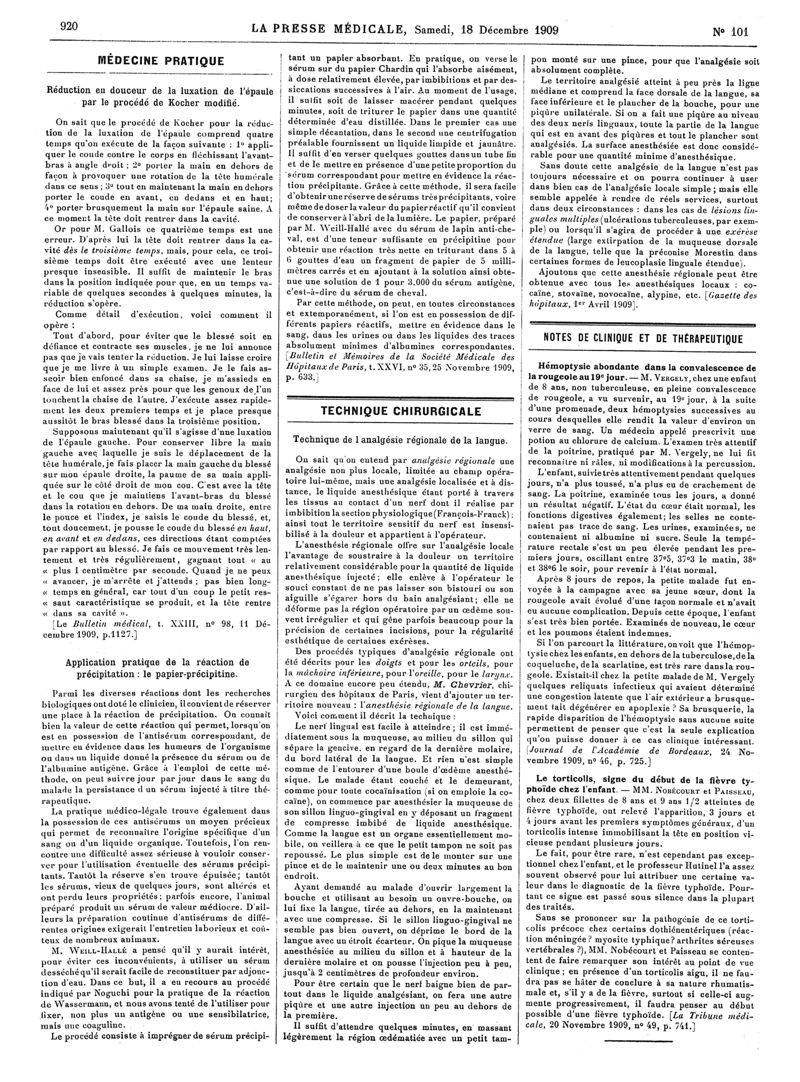1909, Articles originaux. -