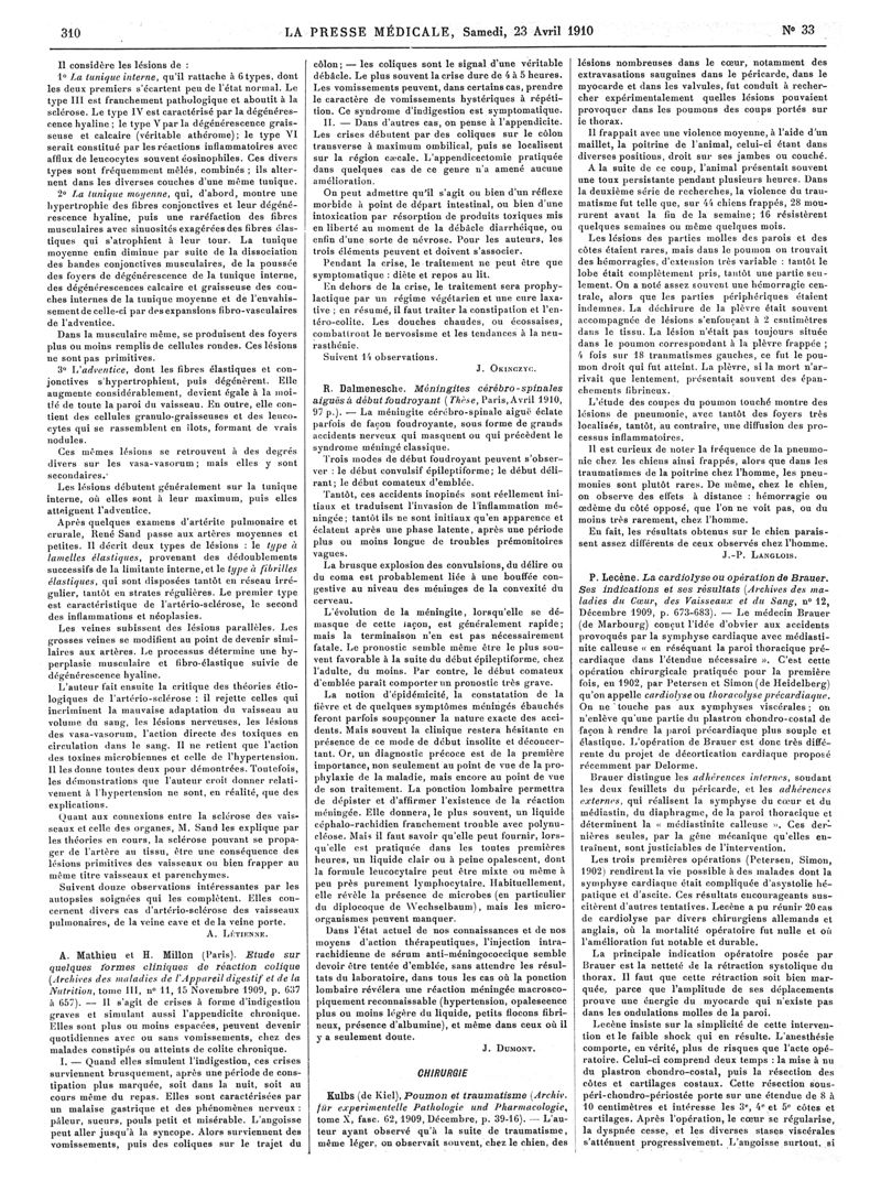 1910, Articles originaux. -