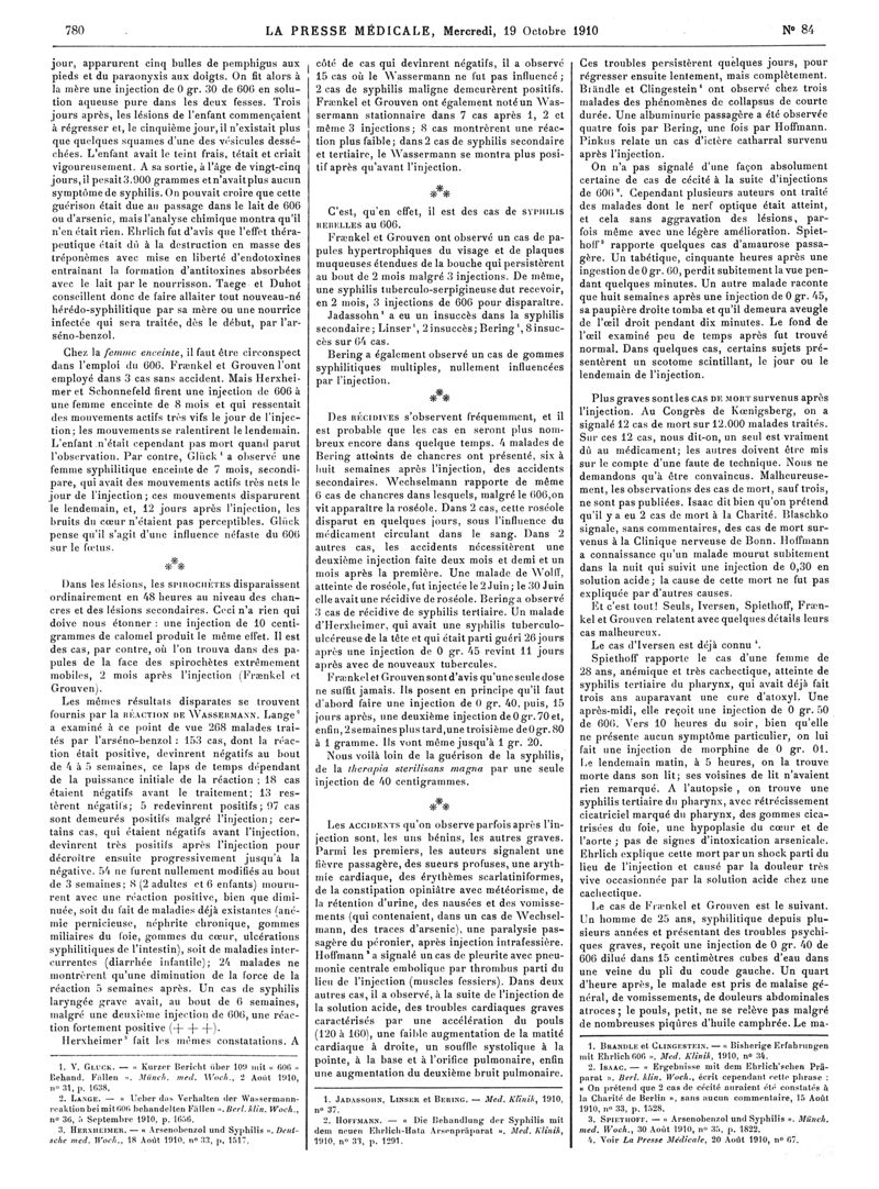 1910, Articles originaux. -