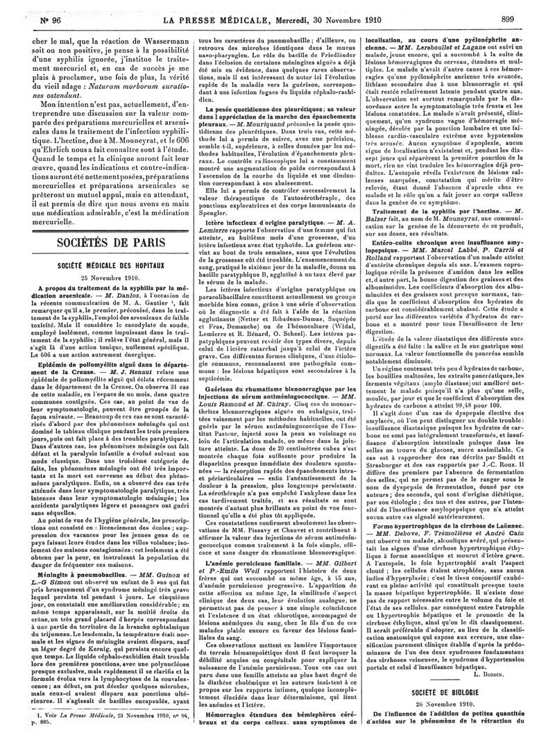 1910, Articles originaux. -