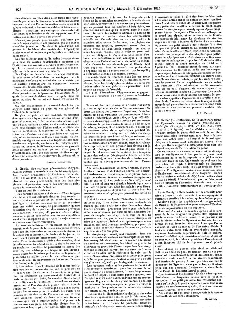 1910, Articles originaux. -