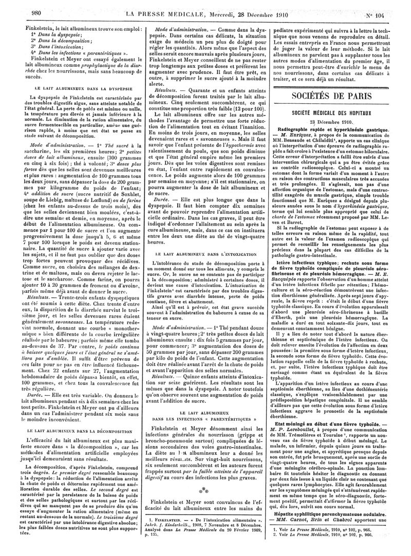 1910, Articles originaux. -