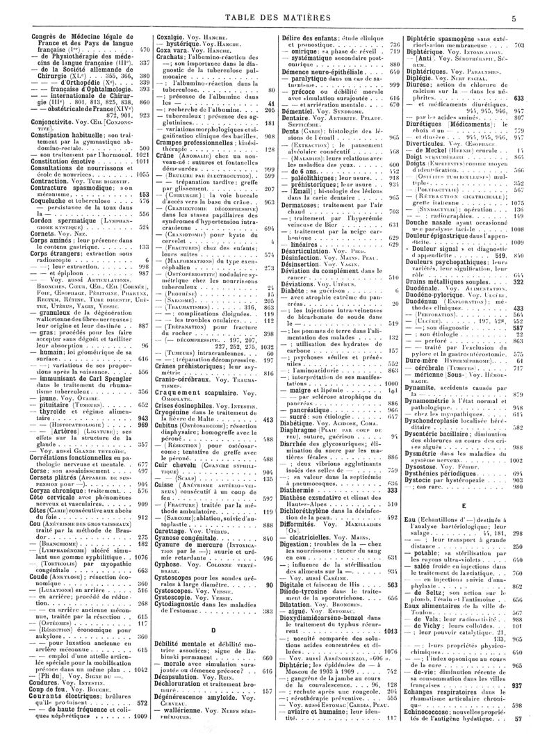 1911, Volume de tables. -
