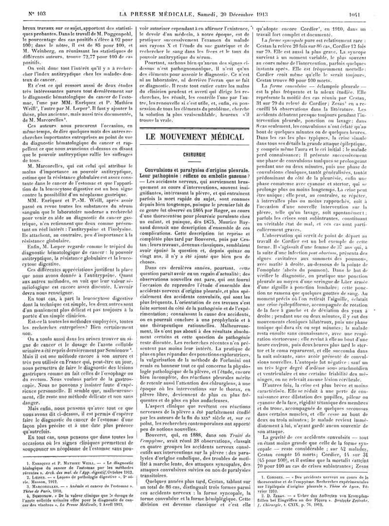 1913, Articles originaux. -