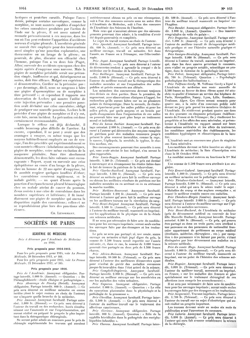 1913, Articles originaux. -