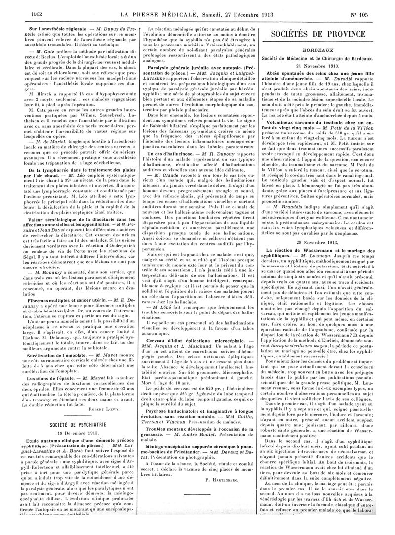 1913, Articles originaux. -