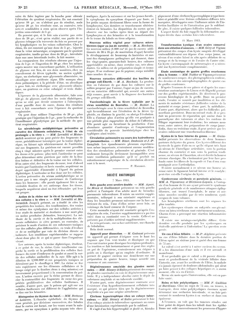 1913, Articles originaux. -