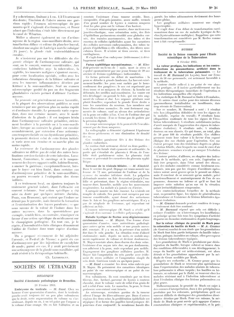 1913, Articles originaux. -