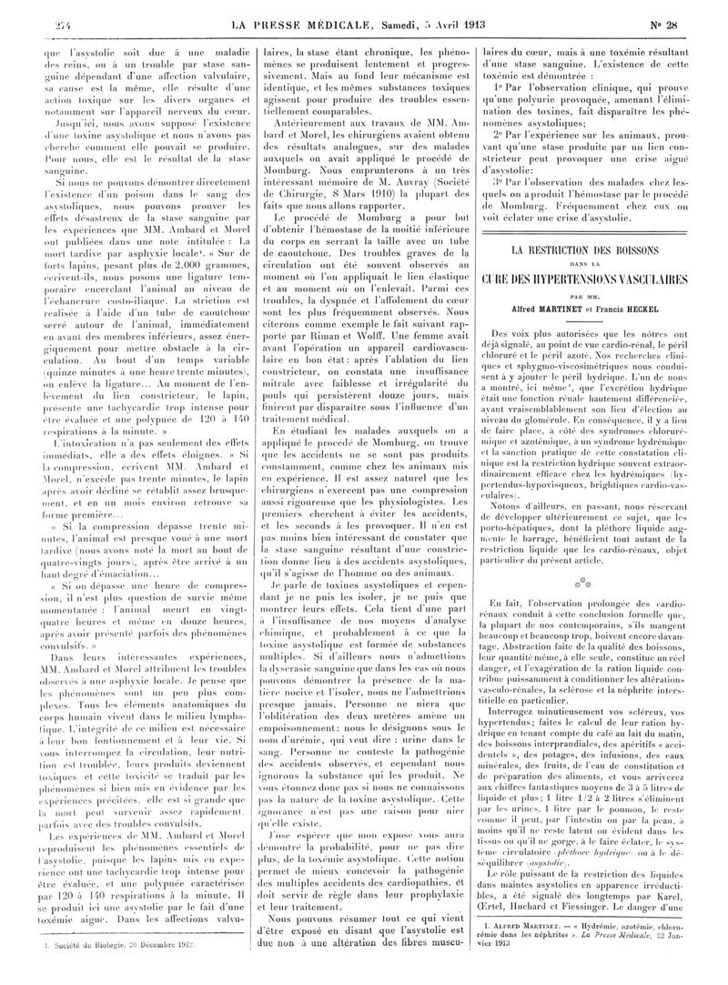 1913, Articles originaux. -