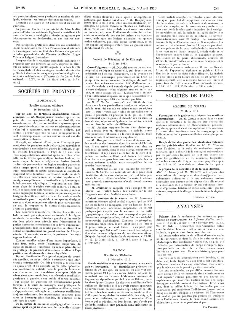 1913, Articles originaux. -