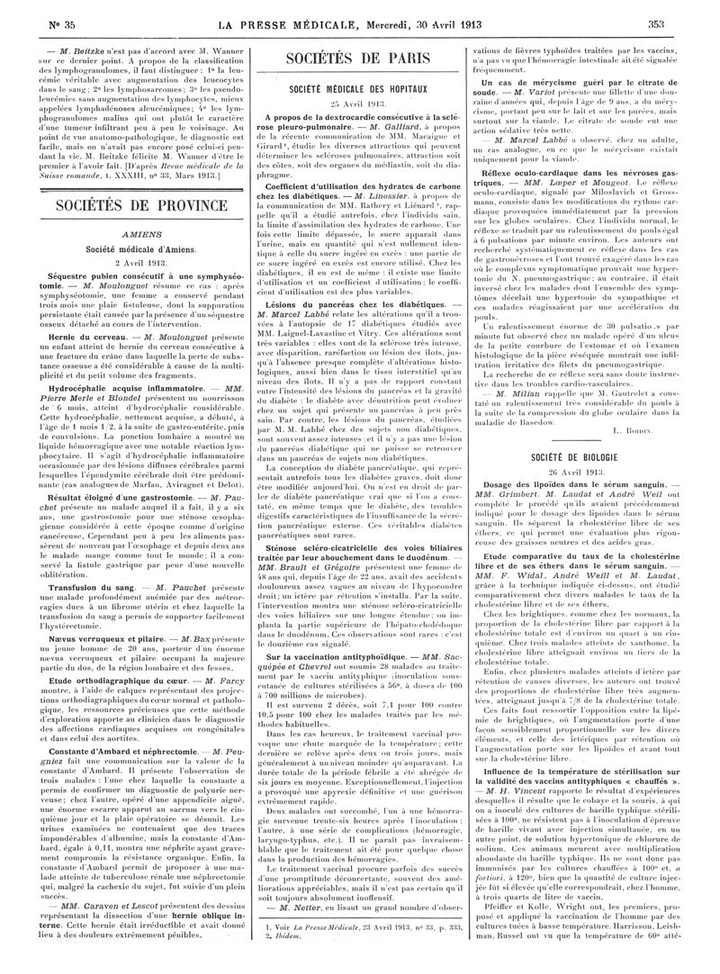 1913, Articles originaux. -