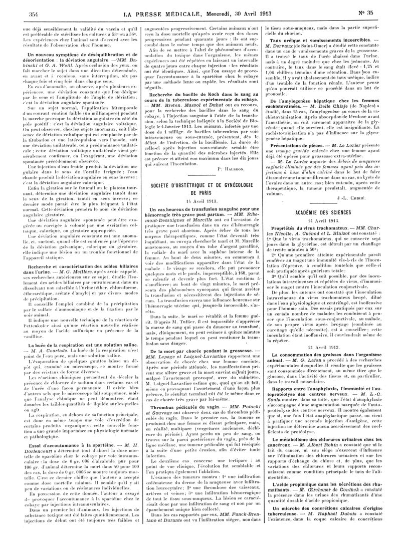 1913, Articles originaux. -