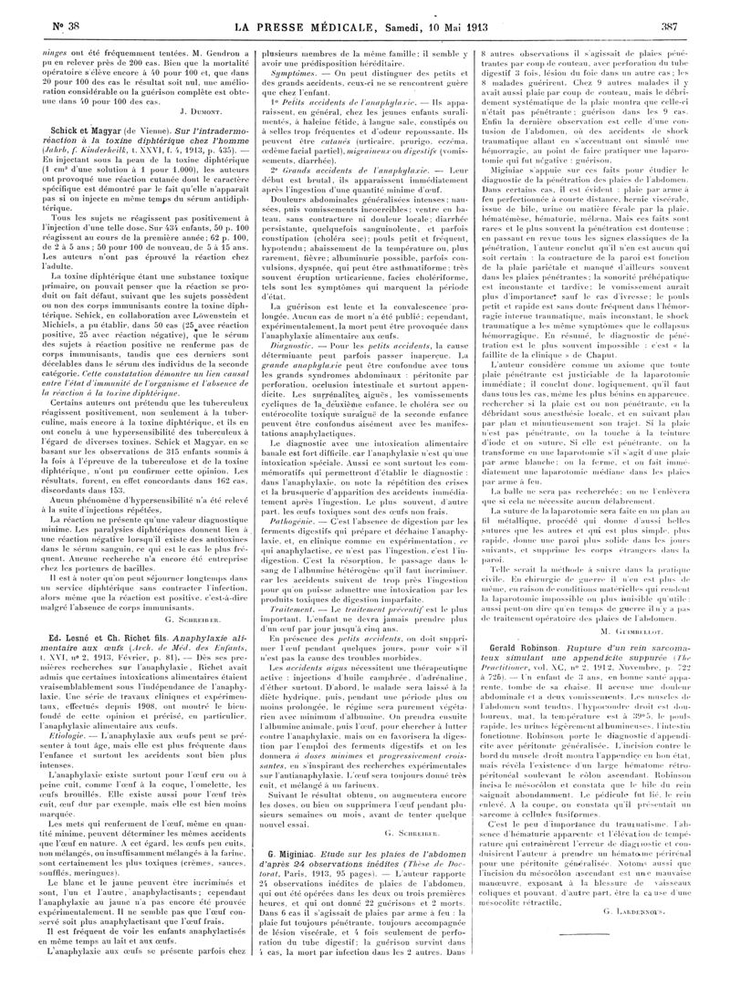 1913, Articles originaux. -