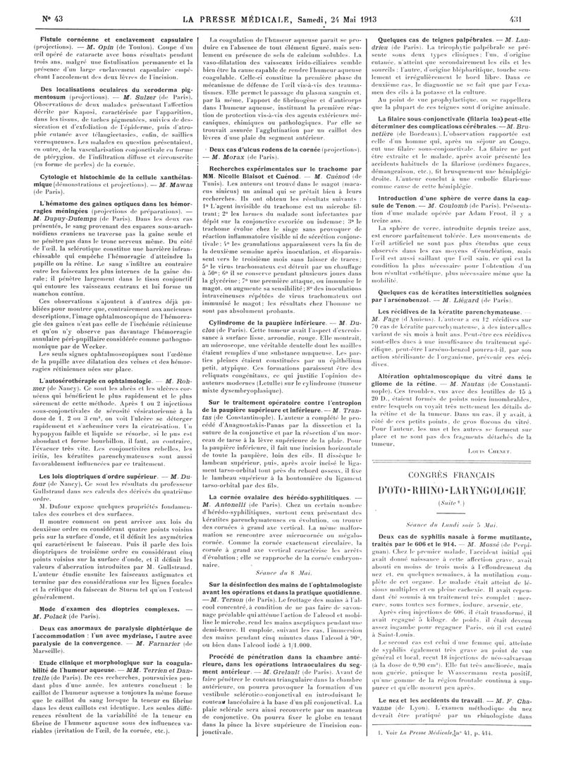 1913, Articles originaux. -