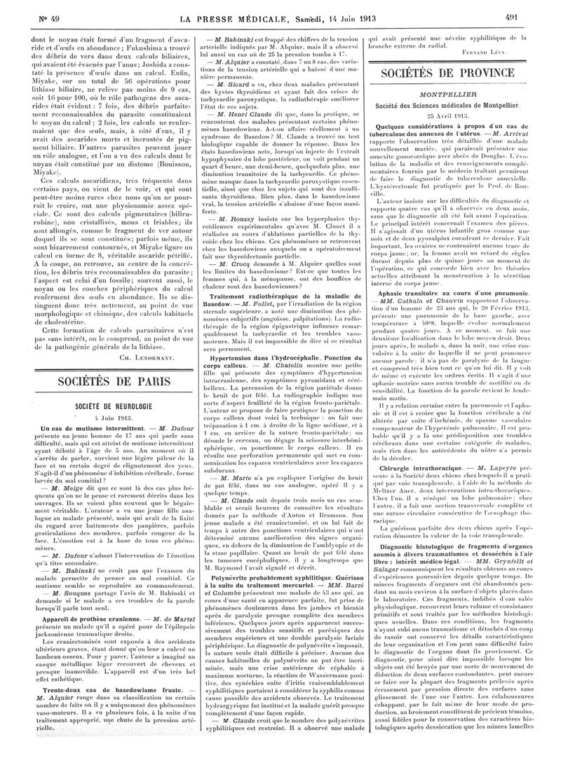 1913, Articles originaux. -