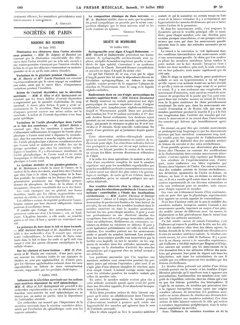 1913, Articles originaux. -
