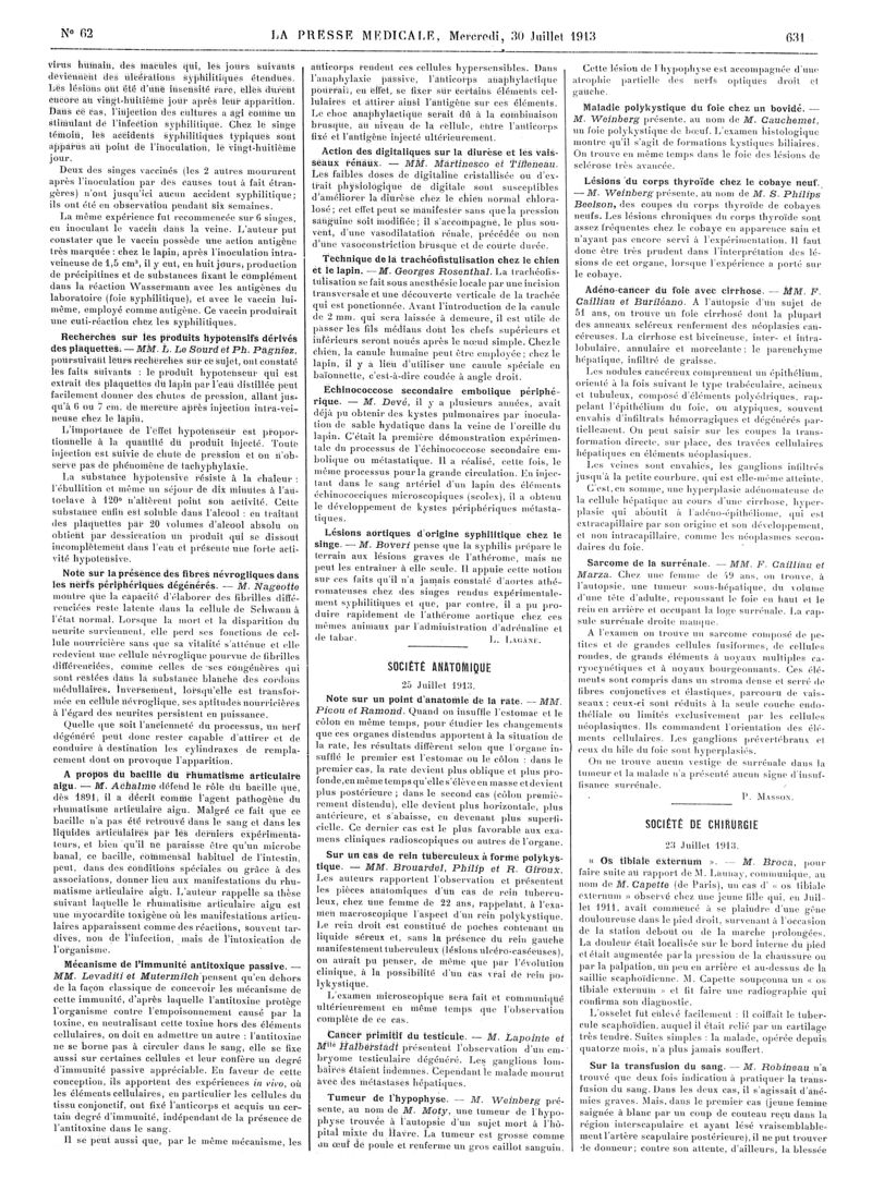 1913, Articles originaux. -