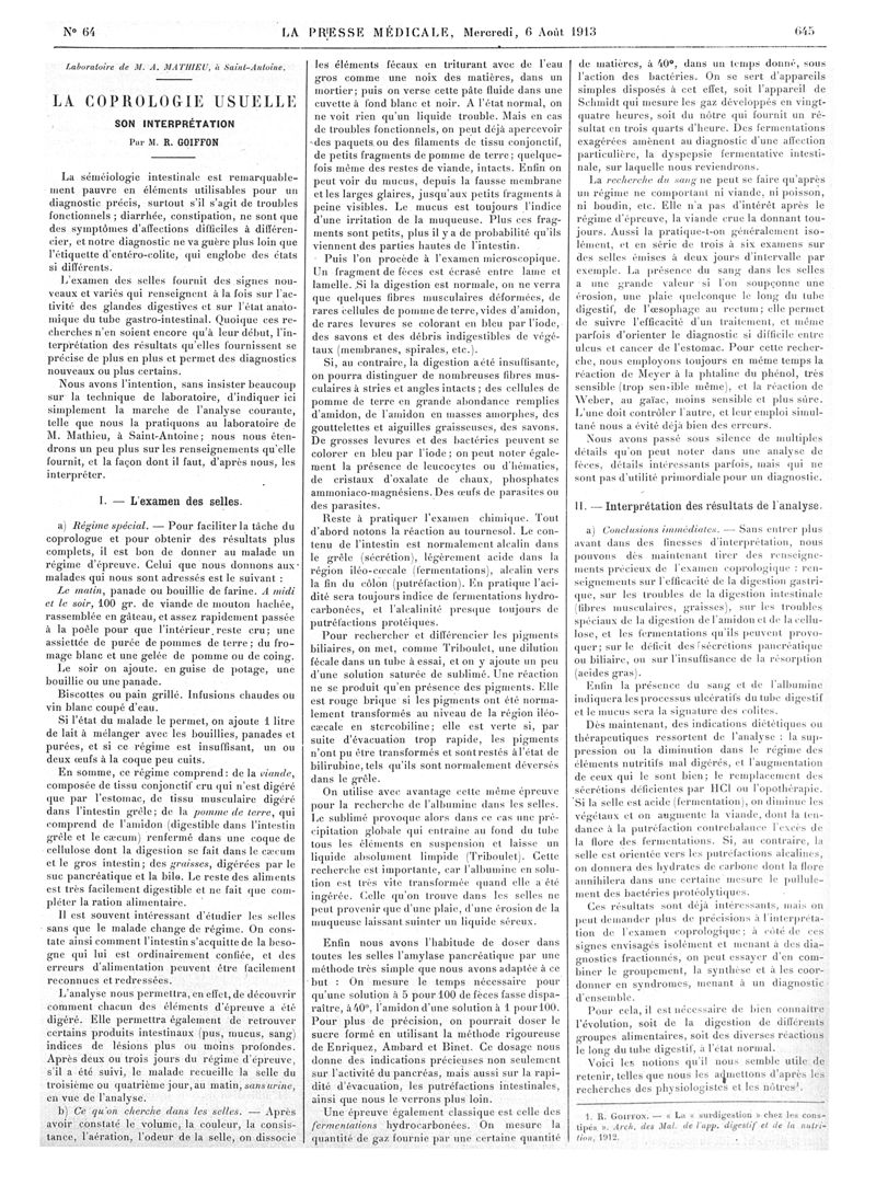 1913, Articles originaux. -