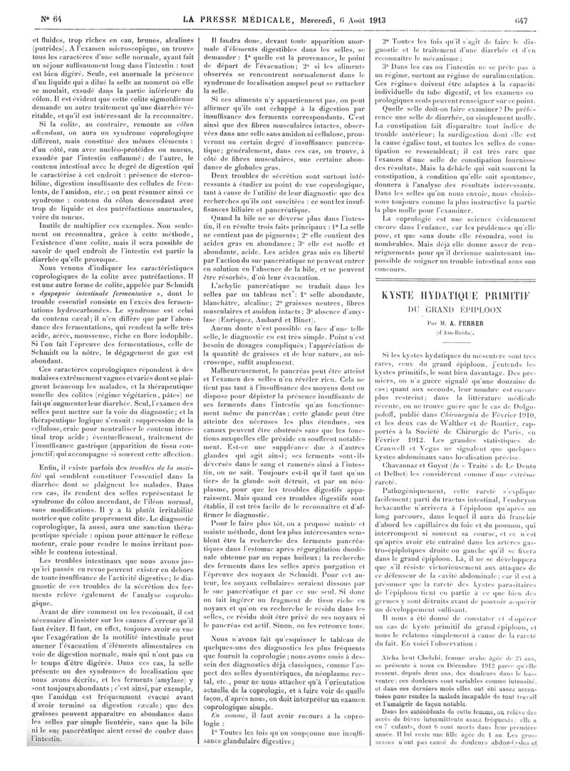 1913, Articles originaux. -