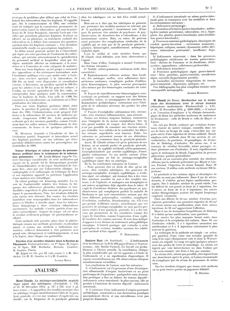 1913, Articles originaux. -