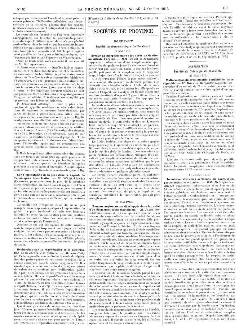 1913, Articles originaux. -