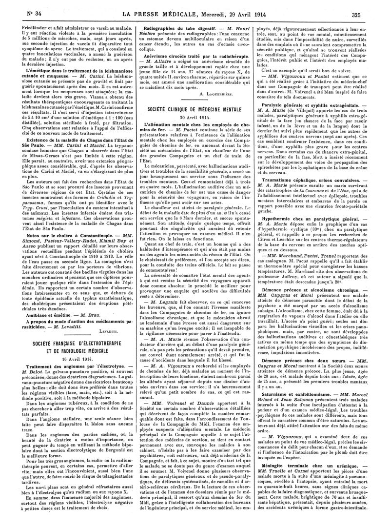 1914, Articles originaux. -