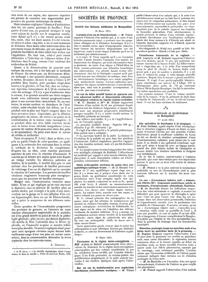 1914, Articles originaux. -