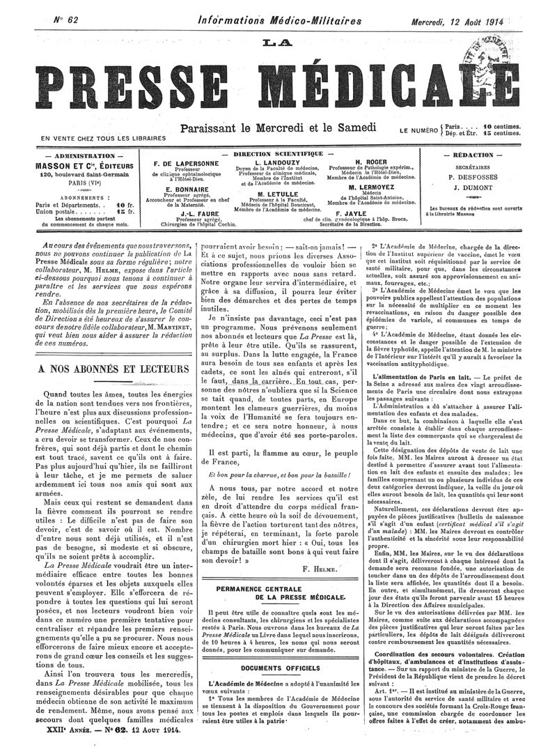 1914, Articles originaux. -
