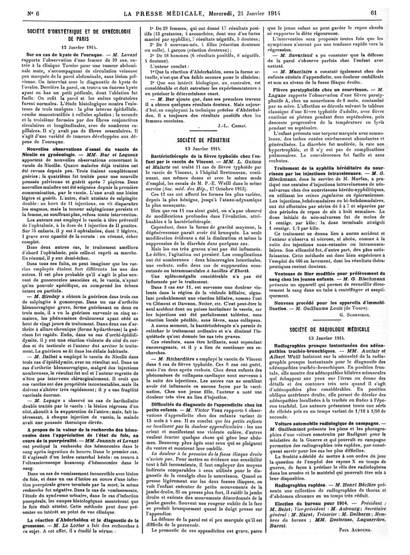1914, Articles originaux. -