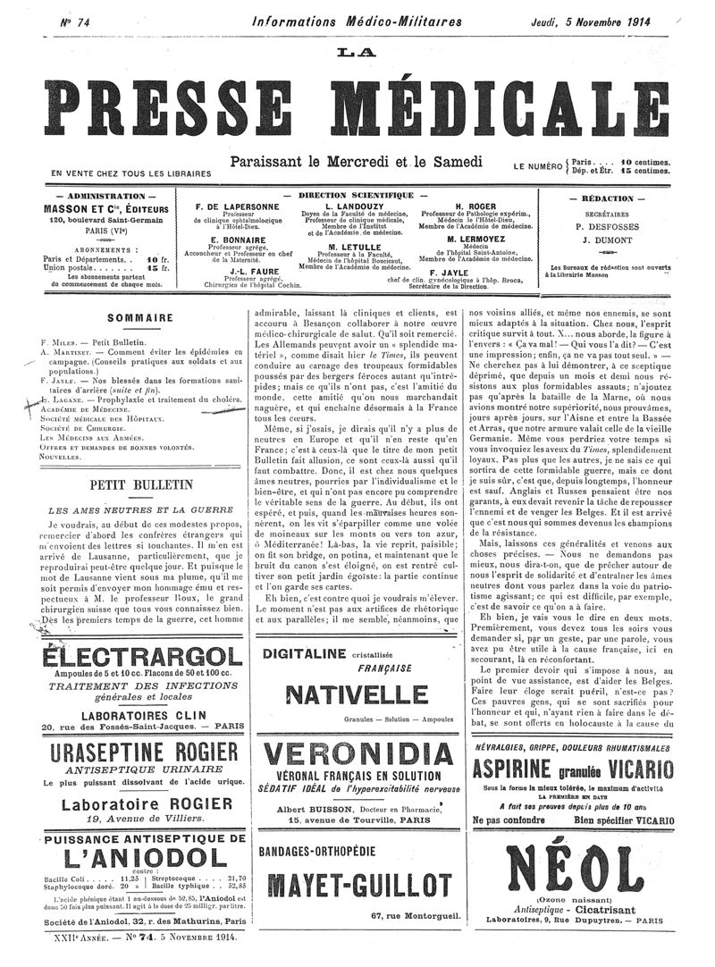1914, Articles originaux. -