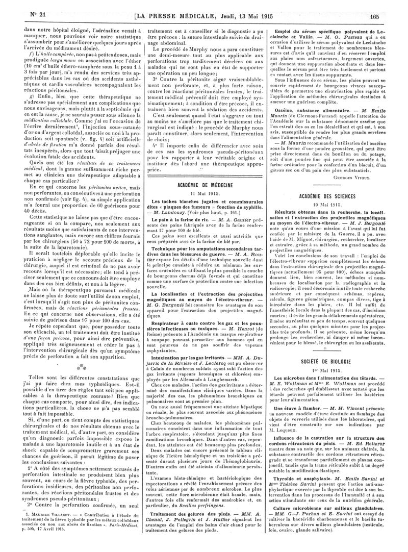 1915, Articles originaux. -