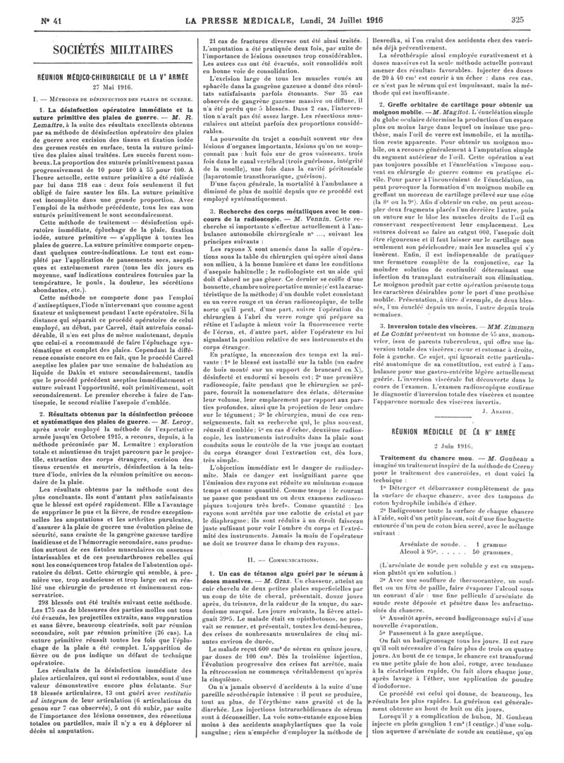 1916, Articles originaux. -