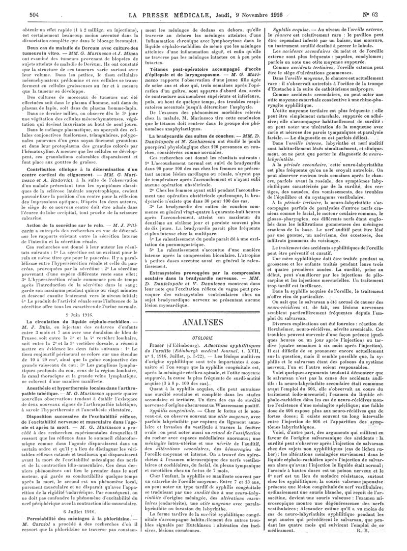 1916, Articles originaux. -