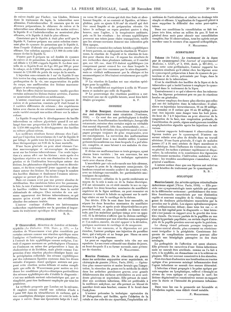 1916, Articles originaux. -