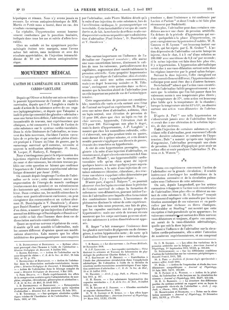 1917, Articles originaux. -