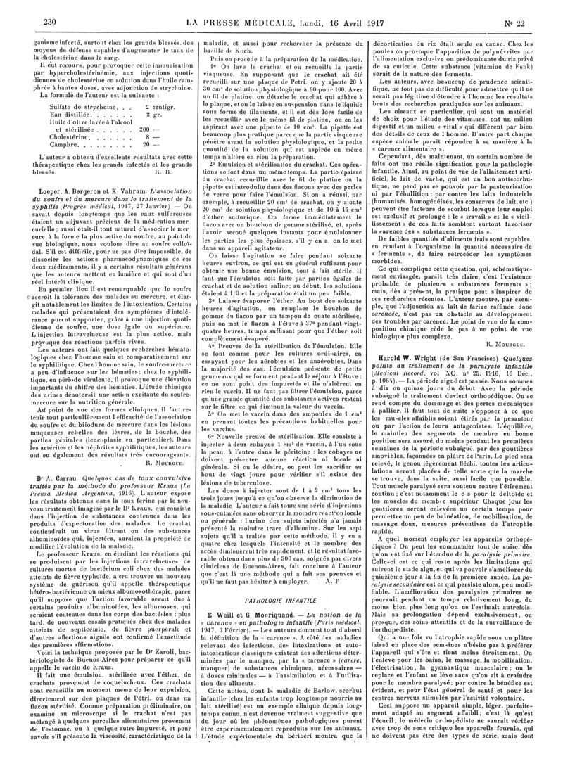 1917, Articles originaux. -