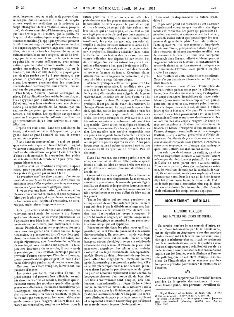 1917, Articles originaux. -