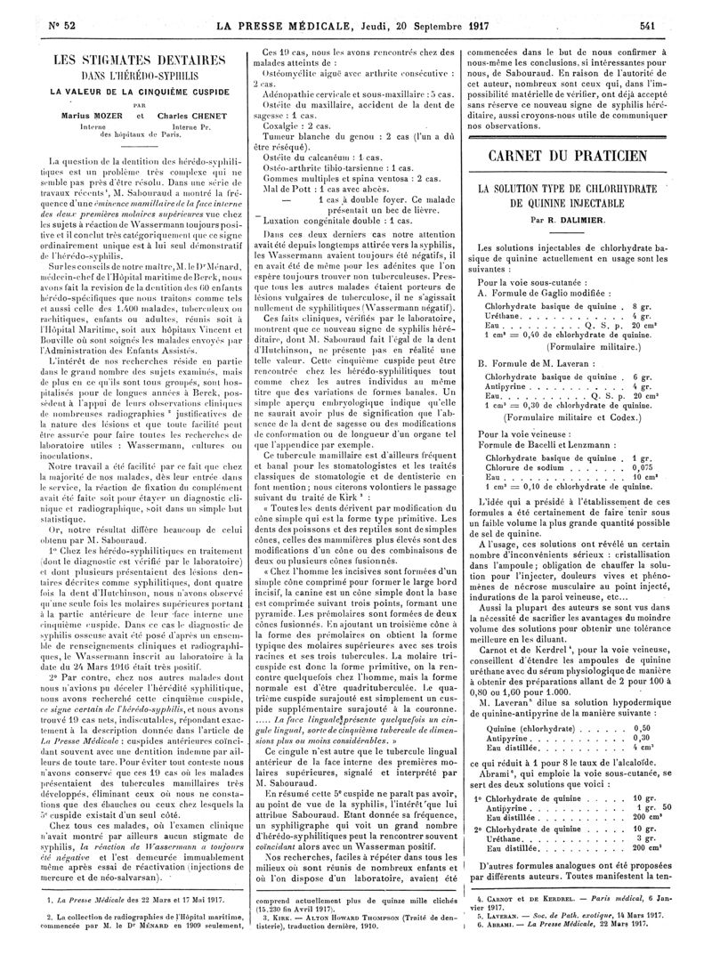 1917, Articles originaux. -
