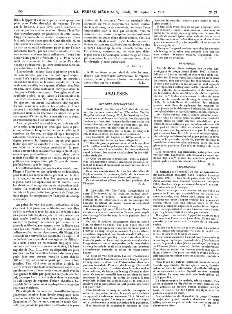 1917, Articles originaux. -