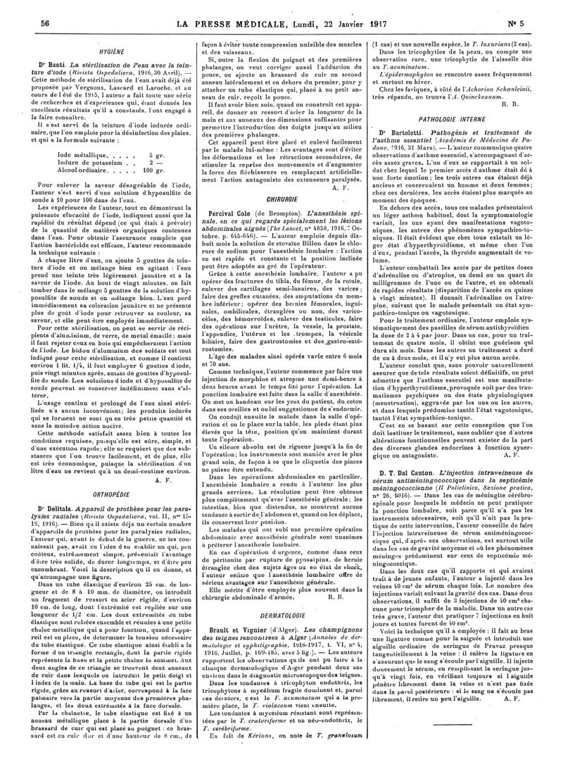 1917, Articles originaux. -