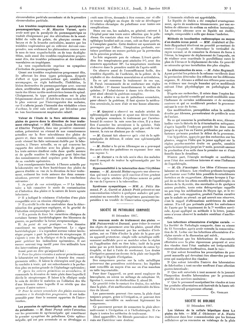 1918, Articles originaux. -