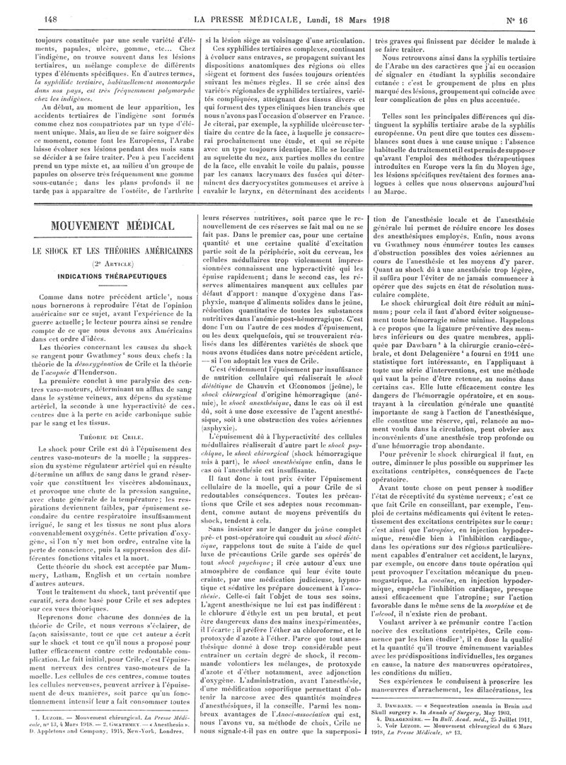 1918, Articles originaux. -