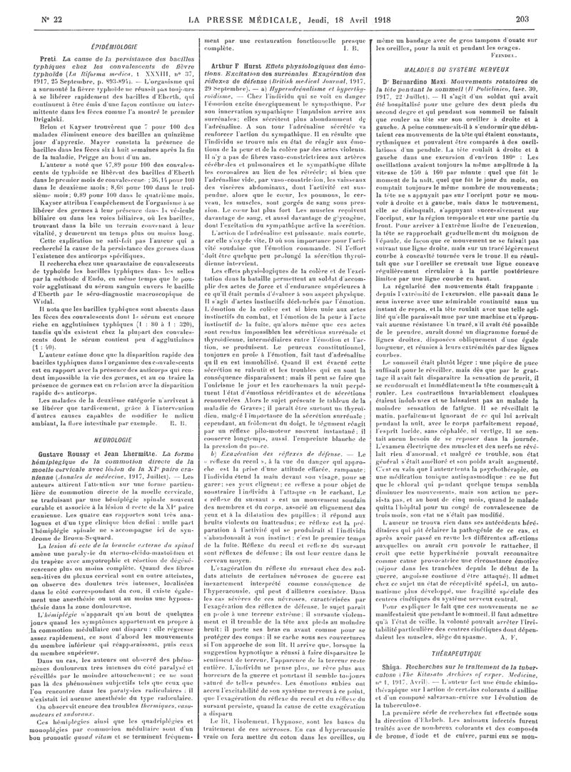 1918, Articles originaux. -