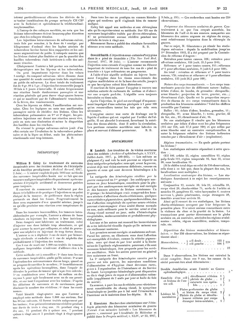 1918, Articles originaux. -