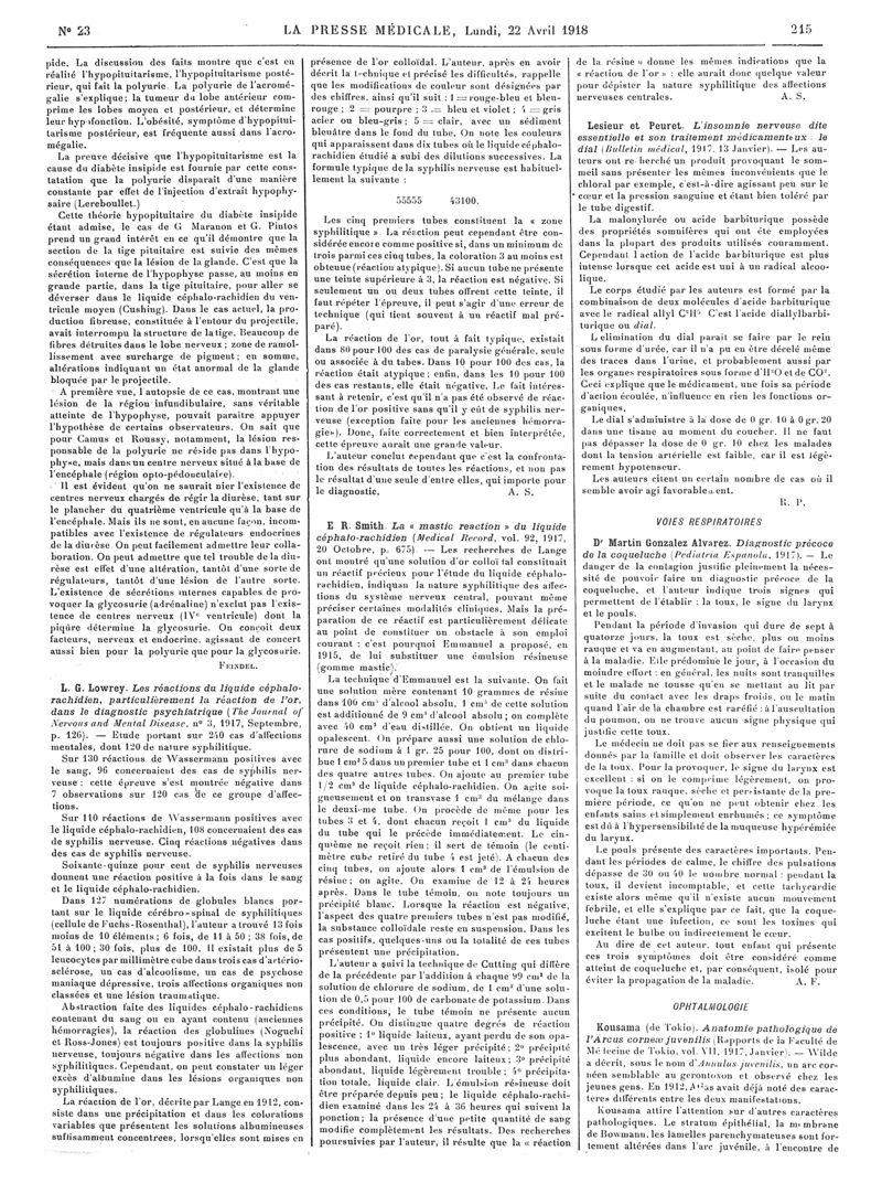 1918, Articles originaux. -