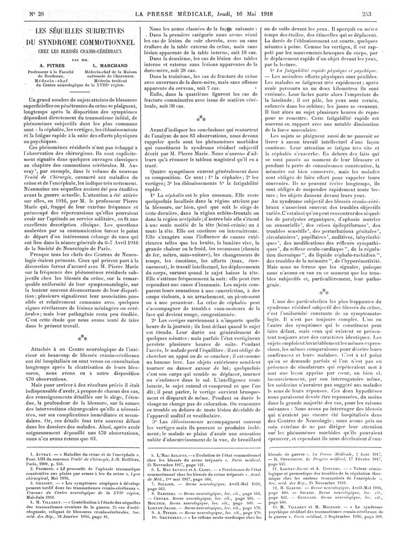 1918, Articles originaux. -