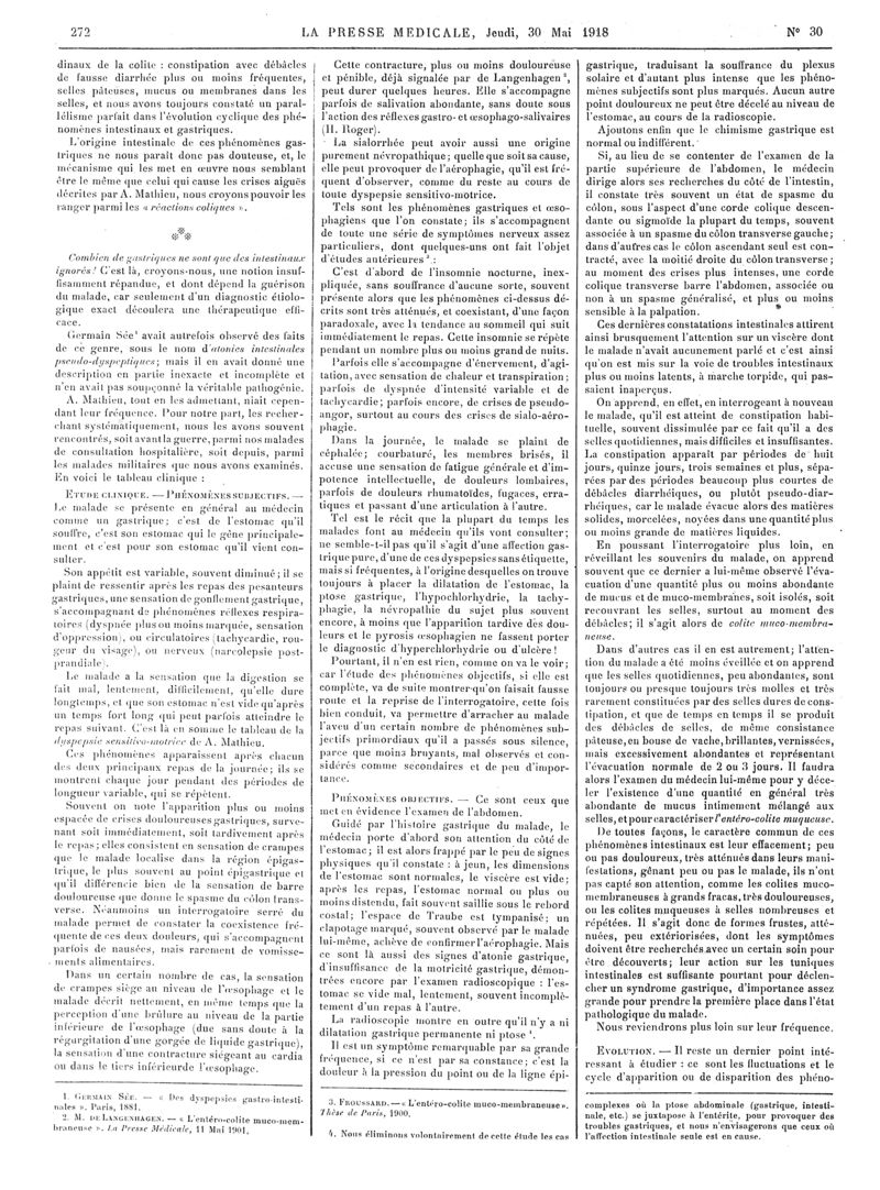 1918, Articles originaux. -