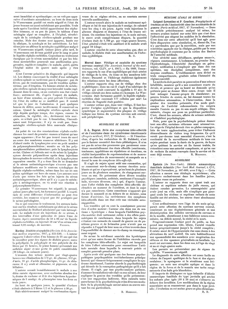 1918, Articles originaux. -