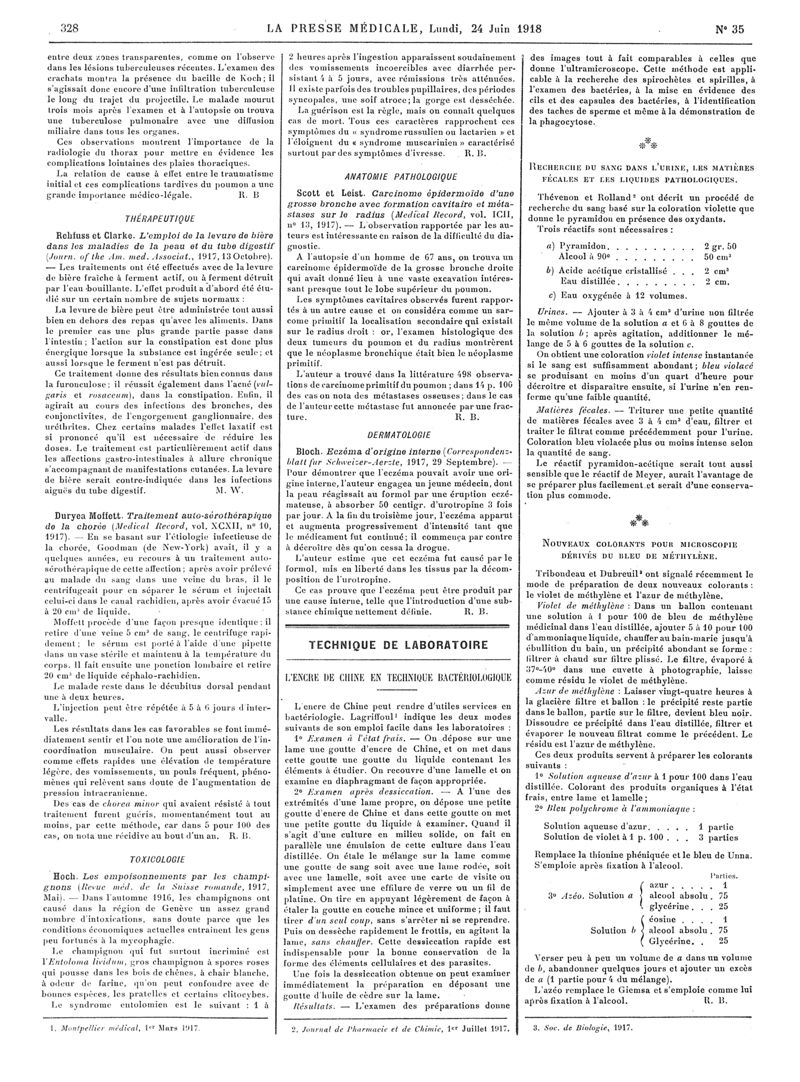 1918, Articles originaux. -