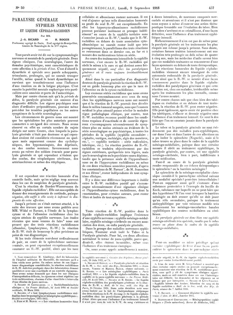 1918, Articles originaux. -